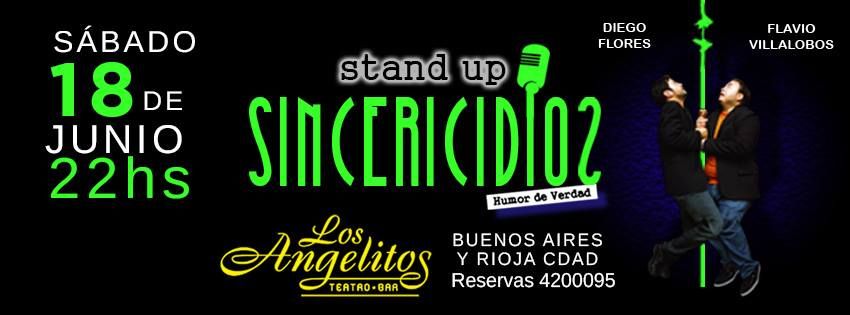 20- Sincericidios. Humor / Stand up. A las 22 en el Teatro Bar Los Angelitos (Rioja y Buenos Aires). Con Diego Flores y Flavio Pichón Villalobos. Entrada: $70.
