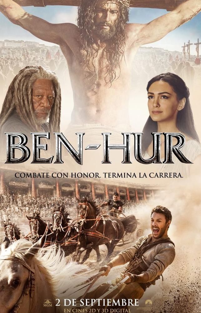 Aparece Morgan Freeman con unas rastas poco creíbles, mirando concernido al espectador. En la parte baja (como si hubieran querido incluir a todo el elenco en el cuadro) aparece la imagen de Jack Huston a bordo de su cuádriga (es la misma imagen que se utilizó para la cartelería original). A la derecha del cuadro es Nazanin Boniadi la que asoma su belleza, pero no logra mejorar la composición.