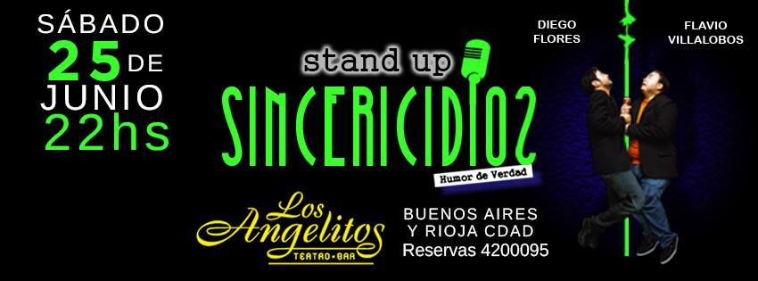 17- Sincericidios. Humor / Stand up. A las 22 en el Teatro Bar Los Angelitos (Rioja y Buenos Aires). Con Diego Flores y Flavio Pichón Villalobos. Entrada: $70.