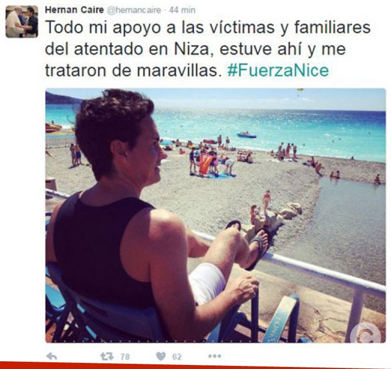 Luego de hacerse público el atentado en Niza, las redes sociales comenzaron a reaccionar ante un nuevo ataque terrorista que afectó a Francia. Entre los mensajes de paz, un tweet de Hernán Caire despertó tantas críticas que decidió eliminarlo.