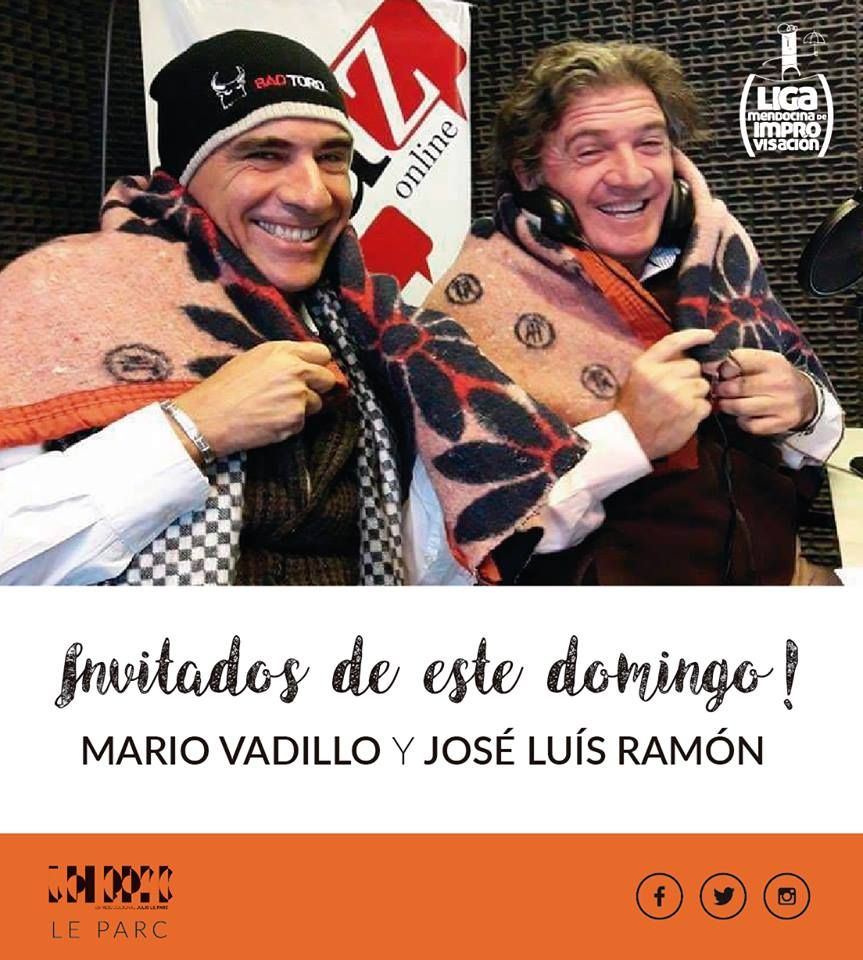 1- Liga Mendocina de Improvisación. Teatro / Humor / Improvisación. A las 20 en la Sala Circular del Espacio Le Parc (Mitre y Godoy Cruz, Guaymallén). Entrada: $80. Los invitados de este domingo son dos figuras de MDZ Radio: Mario Vadillo y José Ramón, del exitoso programa Hagamos lío.