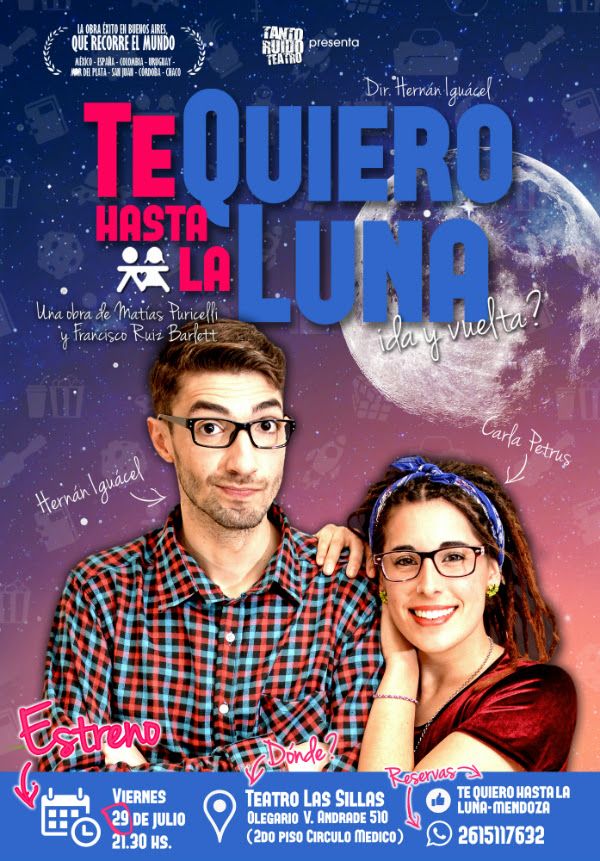 Julia y Pablo se conocen desde los siete años. Fueron amigos, primero; y novios, después. Se separaron a los 25, cuando ya habían pagado el viaje de sus sueños: un despegue hacia la Luna. A partir de este conflicto se despliega la trama de Te quiero hasta la luna, ¿ida y vuelta?, comedia romántica que Tanto Ruido Teatro estrena esta noche a las 21.30 en el Teatro Las Sillas (Olegario V. Andrade 510, 2° piso, Círculo Médico).