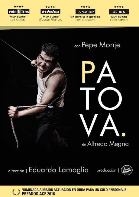 3- Patova. Teatro / Unipersonal. A las 22 el Teatro Quintanilla (Subsuelo Plaza Independencia). Entradas: general $240 - estudiantes y jubilados $180. Ver nota haciendo clic aquí. Patova es el título de la obra para un solo actor que escribió Alfredo Megna, y que lleva a escena Pepe Monje, bajo la dirección y puesta en escena de Eduardo Lamoglia. El espectáculo narra desde el humor y el drama, una historia de amor y locura. El autor nos cuenta la historia de Sopa, un patovica humilde y querible. Un hombre que refleja con su cuerpo una lucha particular entre lo real y lo imaginario. Sus fantasmas aparecen en cada historia que nos cuenta sobre sus amores, traiciones, odios y temores; con un desenlace impactante lleno de emoción. La producción general es de Daniel Dee.