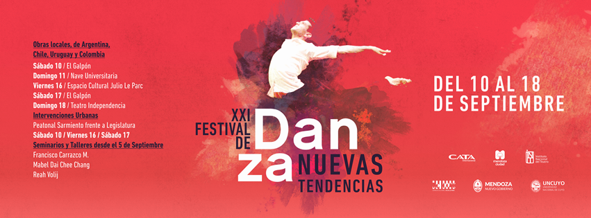 Los fines de semana del 10 al 18 de septiembre podremos asistir a una nueva edición del Festival de Danza de Nuevas Tendencias. En esta, su 21ª edición, se proponen puestas en escena de destacadas compañías locales, nacionales e internacionales provenientes de Mendoza, Argentina, Chile, Uruguay y Colombia las cuales podrán ser disfrutadas en diferentes salas de nuestra provincia. Por otro lado, el festival vuelve a darle magia a la vida cotidiana de nuestra Ciudad con las ya reconocidas "Intervenciones Urbanas".