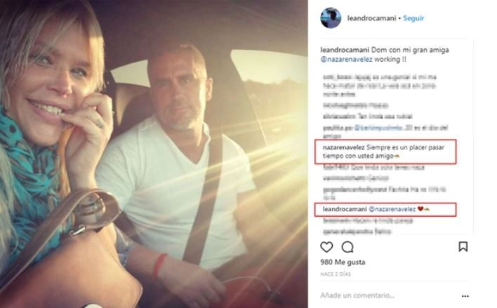 Ex novio de la mediática Samanta Farjat (con quien tuvo una hija, Macarena), Camani fue amigo de Fabián Rodríguez, el marido de Nazarena que terminó quitándose la vida en marzo de 2014, de acuerdo a lo que informa TV Bajo Cero. Sin embargo, la actriz es clara. "A Leandro no lo conocía de antes", le aclaró al periodista Fernando Prensa. Y agregó: "Es mentira lo que están diciendo de que era socio o trabajó con Fabi, o que nos conocemos desde hace mucho tiempo. Yo nunca le había visto la cara, no lo conocía".