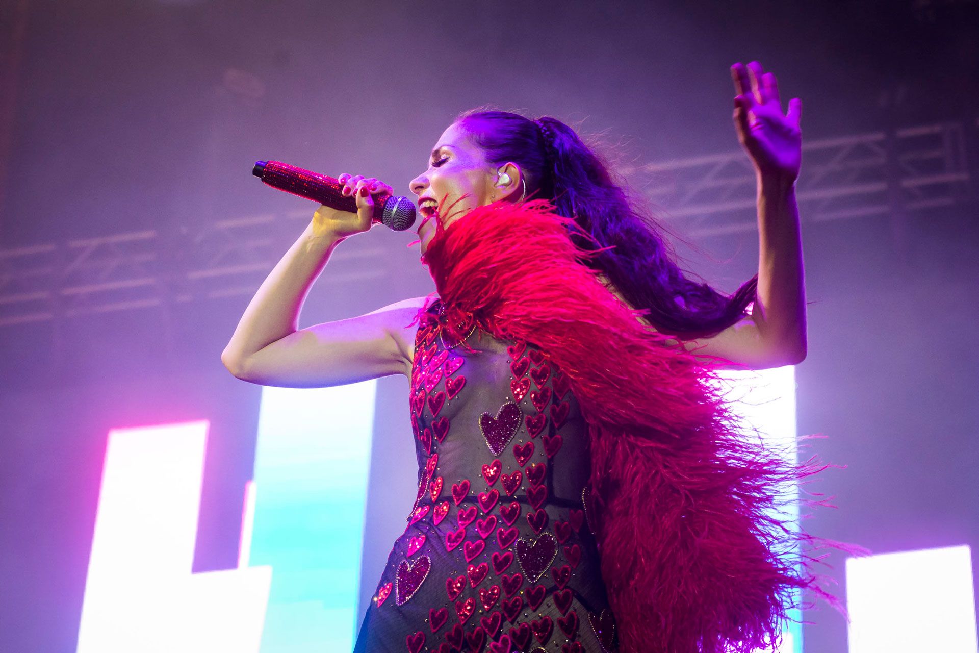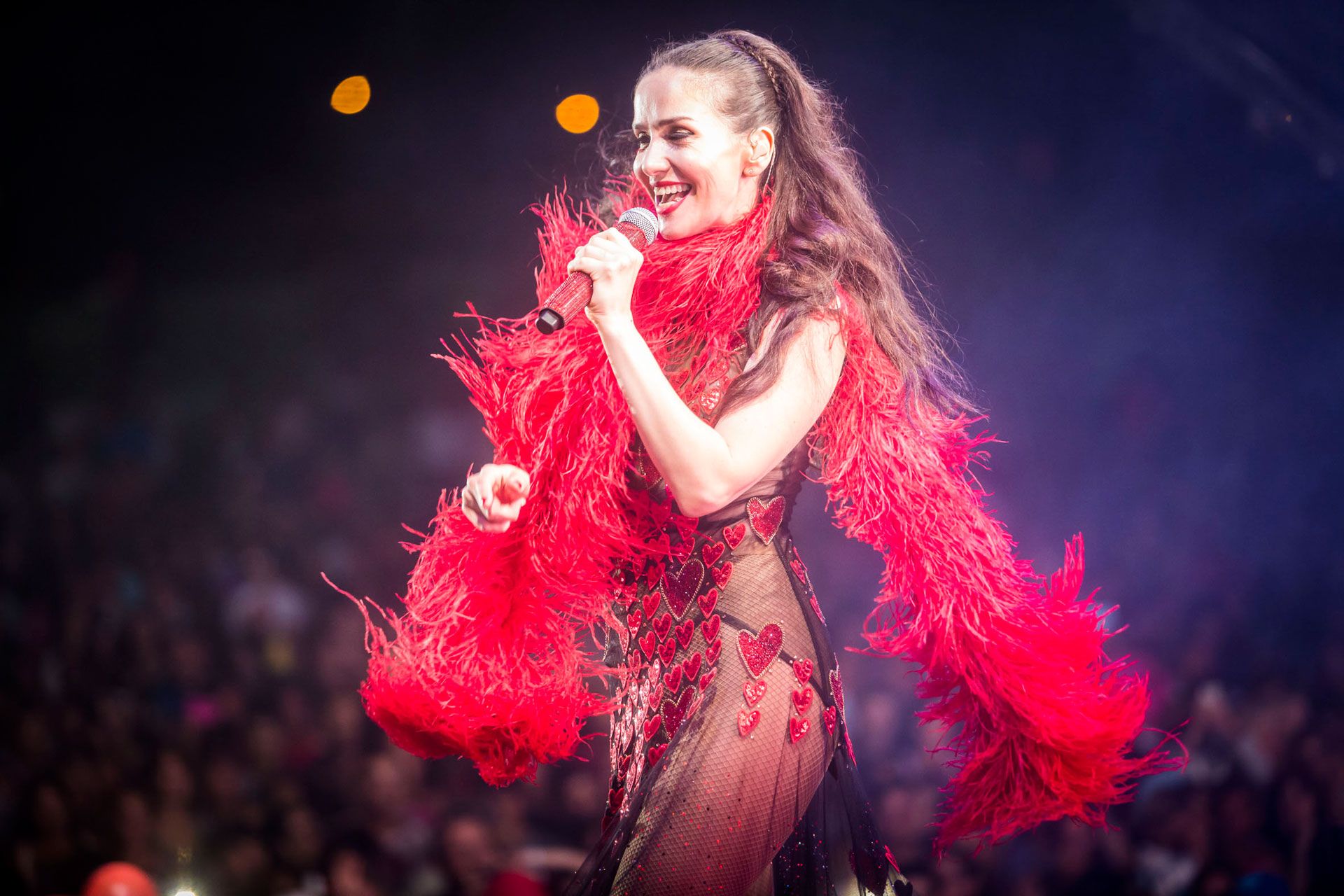 En Rusia, la actriz y cantante sigue presentándose ante multitudes. Argentina tuvo que esperar más de una década. Las fotos del show en Mar del Plata.