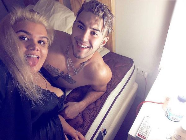 Morena Rial posó en baby doll junto a su novio en la cama