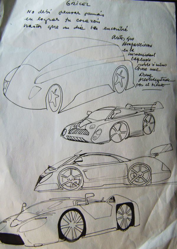 En cada uno de esos súper deportivos estaba la impronta de quien, en su infancia, sueña con el auto que le gustaría manejar: veloz, potente, intrépido, casi como los kartings a los que el autor de El anillo del Capitán Beto subía cada vez que se daba la ocasión. Sin embargo, al ver los diseños del Flaco, podría quedar inaugurada una nueva categoría: por su originalidad, son autos spinettianos.