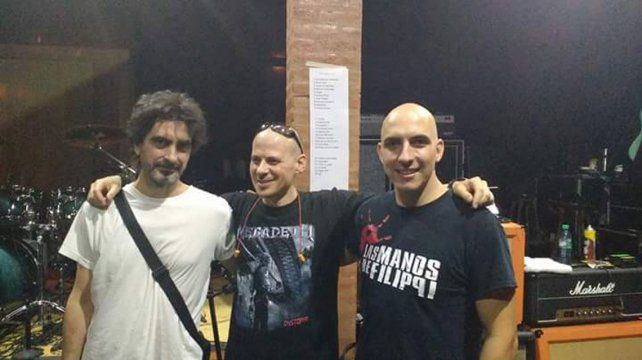En la fotografía, junto a Di Paolo, aparecen el guitarrista Gaspar Benegas y el tecladista Pablo Sbaraglia, y tras ellos la supuesta lista del próximo show de Olavarría.