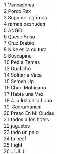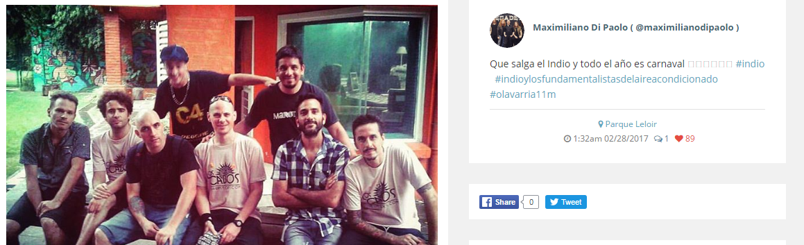 Se filtró por la lista de temas del Indio en Olavarria