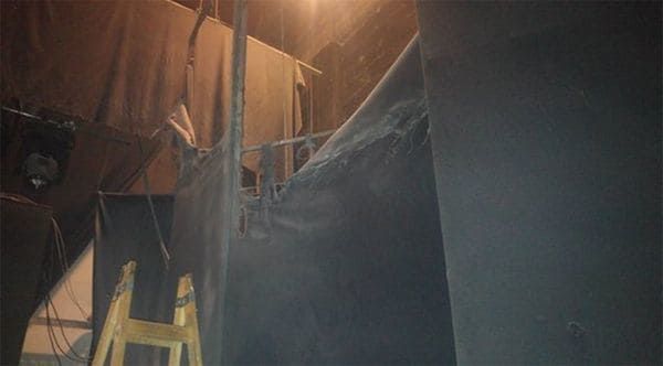 Parte de la tela que fue destruida por el fuego en el Teatro del Sol 1 (Foto @andyferreyra)
