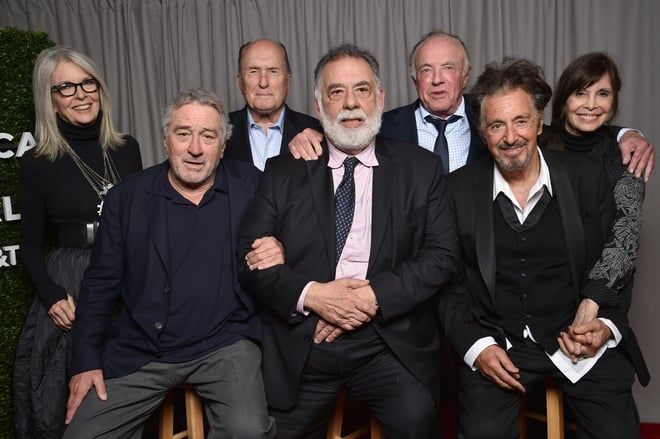 De izquierda a derecha, Diane Keaton, Robert De Niro, Robert Duvall, Francis Ford Coppola, James Caan, Al Pacino y Talia Shire. GETTY