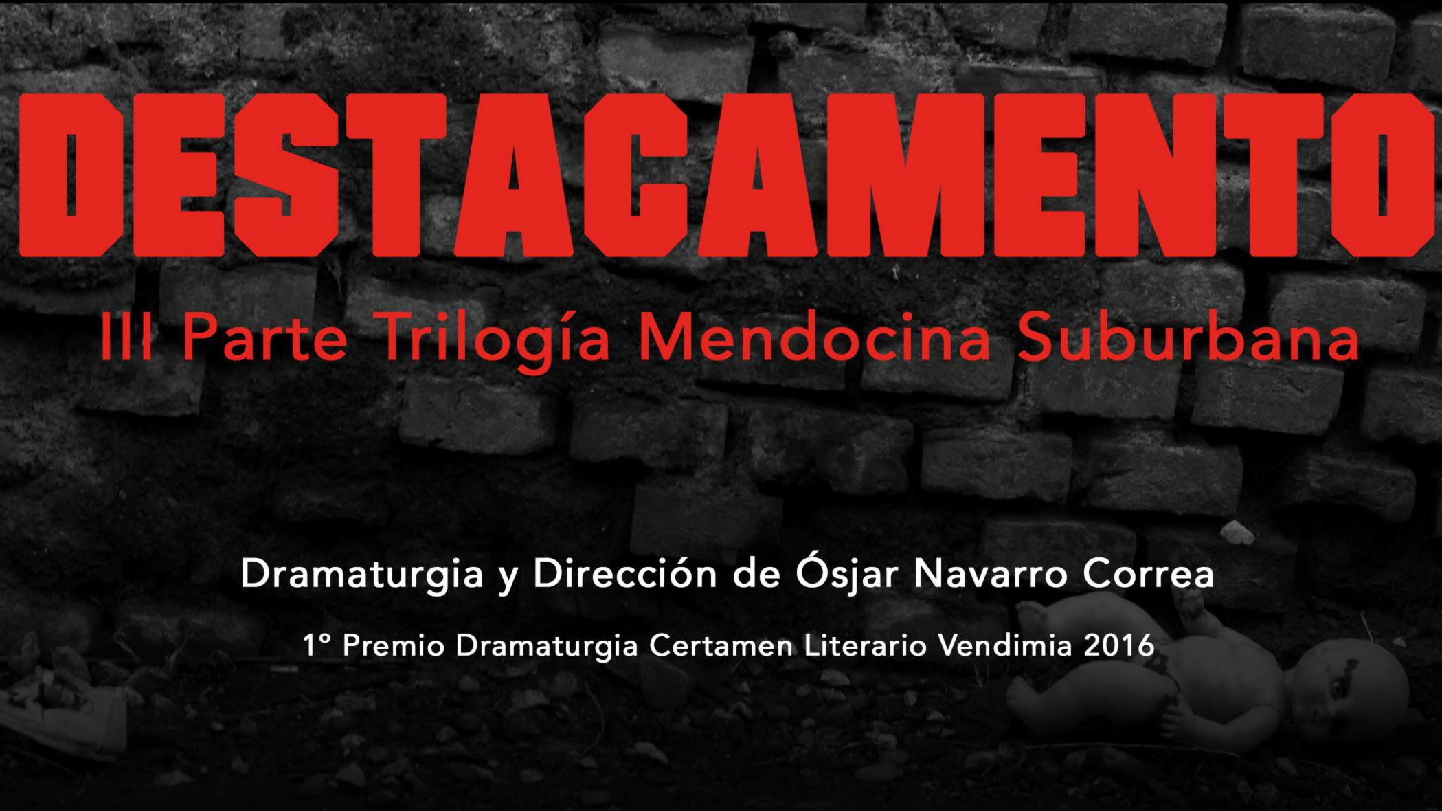 Destacamento, obra ganadora del Certamen Literario Vendimia 2016, sube a escena este viernes y sábado, a las 21.30, en el Teatro Independencia. Con texto y dirección de Osjar Navarro Correa, este drama solo apto para mayores de 16 años concluye la Trilogía Suburbana Mendocina, un proyecto que intenta reflexionar sobre el denominado "mundo marginal".