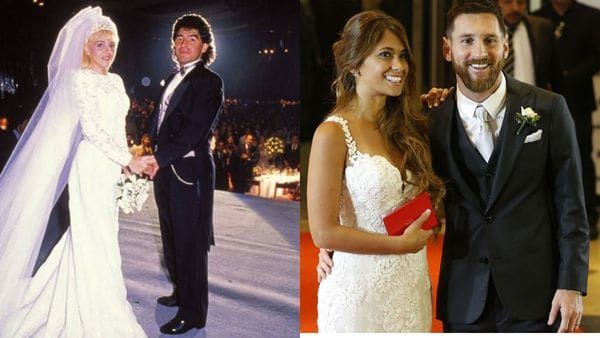 Los mejores futbolistas del mundo -cada uno en su época-, se casaron casi con la misma edad. Ambos, con el amor de su adolescencia. Ambos, ya con una familia formada. Pero con festejos que poco tuvieron en común.