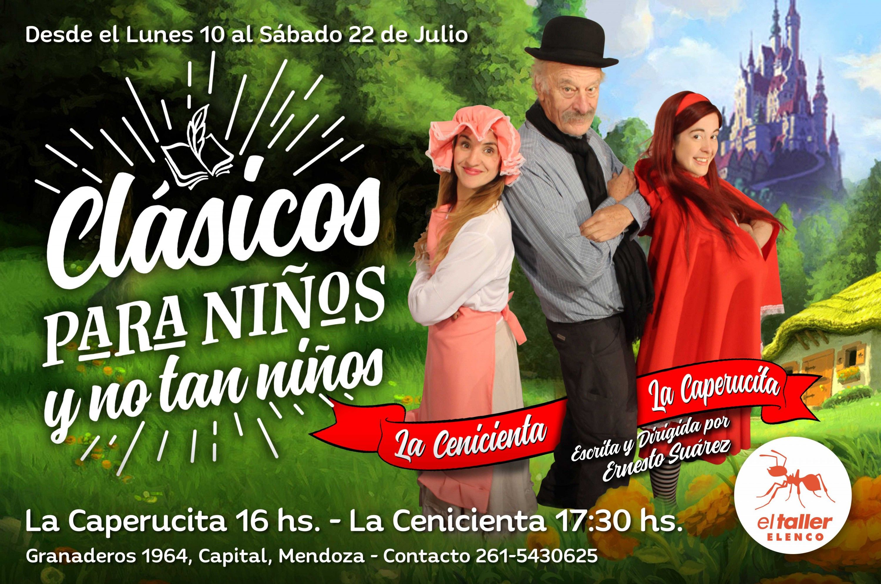 Ernesto Suárez y el elenco El Taller dicen presente en Vacaciones de Invierno con Clásicos para niños y no tan niños, una propuesta para disfrutar en familia. Desde hoy y hasta el sábado 22 de julio, el ciclo pone en escena dos celebradas versiones libres de La Caperucita y La Cenicienta, escritas y dirigidas por el Flaco. Funciones diarias, a las 16 y 17.30.