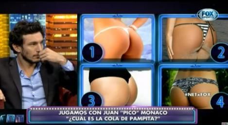 En un momento, Germán Paoloski le propuso un juego. Pico tenía que adivinar cuál era la cola de su pareja, Carolina "Pampita" Ardohain, entre otras tres opciones.