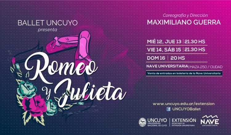Bajo la dirección de Marisa Manyegüi, el Ballet de la UNCuyo viene trabajando desde hace dos meses en este nuevo proyecto para poner en escena la obra Romeo y Julieta, con coreografía y dirección del reconocido bailarín, coreógrafo y director Maximiliano Guerra, junto a su Asistente de Reposición Coreográfica Myriam Barroso, ex codirectora del Teatro Colón y actualmente integrante del Cuerpo Estable del Ballet. Ambos bailarines repondrán su versión de Romeo y Julieta para el público mendocino, donde además la escenografía estará a cargo de Daniel Feijóo.
