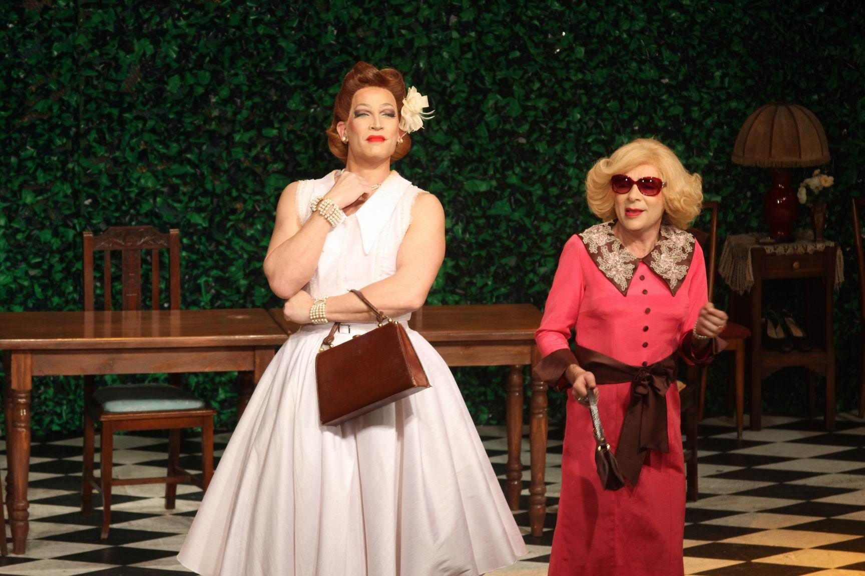 Los protagonistas tienen el oficio suficiente como para soportar algunas parrafadas impresentables y los giros narrativos más caprichosos. Anoche, en doble función ante un Teatro Independencia repleto, la actriz Anahí Ribeiro reemplazó a Cristina Alberó, quien anteriormente había suplido la baja de María Leal en el rol de Rita, la comprensiva y compinche esposa de Renzo/"Valentina" (un Mario Pasik que ocupa el lugar que dejó vacante Gustavo Garzón). Roly Serrano es un militar que se pone en la piel de la carismática y siempre glotona "Gogó". Fabián Vena compone a "Georgina", el personaje más interesante de la obra, que pretende darle al grupo un estatus de asociación para así alcanzar la codiciada aceptación social. El cuasi octogenario Pepe Novoa encarna a "Margo", el único protagonista que tiene en suerte pronunciar diálogos nobles dentro de este engendro escénico. Diego Ramos despliega una desatada parafernalia corporal con su "Gloria", ovacionado por el público; y con una sostenida tendencia a pasarse de rosca. Boy Olmi es "Pupé", un juez que quedará bajo la mira y sentencia, primero de sus compañeros y luego de su propia hija (Paula Morales). Finalmente, José María Muscari sustituye a Nicolás Scarpino en el rol de la novata "Miranda", su presencia en escena tiene una impronta carismática tan nula como la que luce en la pista del Bailando; y es por lejos quien más desentona en una puesta ya de por sí desentonada.