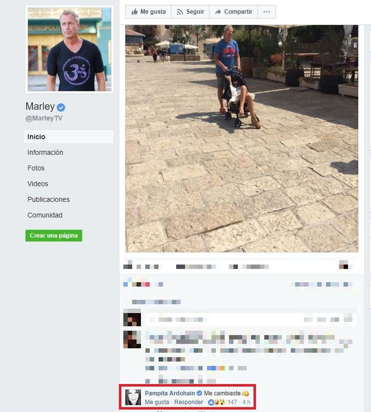 Pero el tema no terminó ahí. Este sábado, Pampita le puso tabasco al tema al comentar una foto de Marley con la China que el conductor publicó en su Facebook.