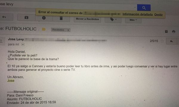 "Me respondió que ya la había empezado a leer y que después me volvería a contactar. Incluso después la di en forma personal un ejemplar de mi libro. Esa fue la última vez que tuve contacto con él y no tuve más noticias hasta casi un año y medio después cuando se anuncia el comienzo del rodaje de El futbol o yo", comenta el autor del libro.