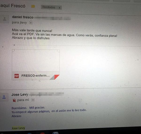 Frescó comienza a investigar de qué se trata la película y encuentra que el coproductor y productor es nada más ni nada menos que José Levy y Marcos Carnevale, junto con Adrián Suar. A esto se suma que en una entrevista, Suar, Díaz y Carnevale dijeron frases que remiten a su novela.