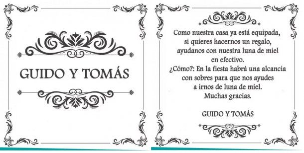 La invitación con el particular pedido de regalo: