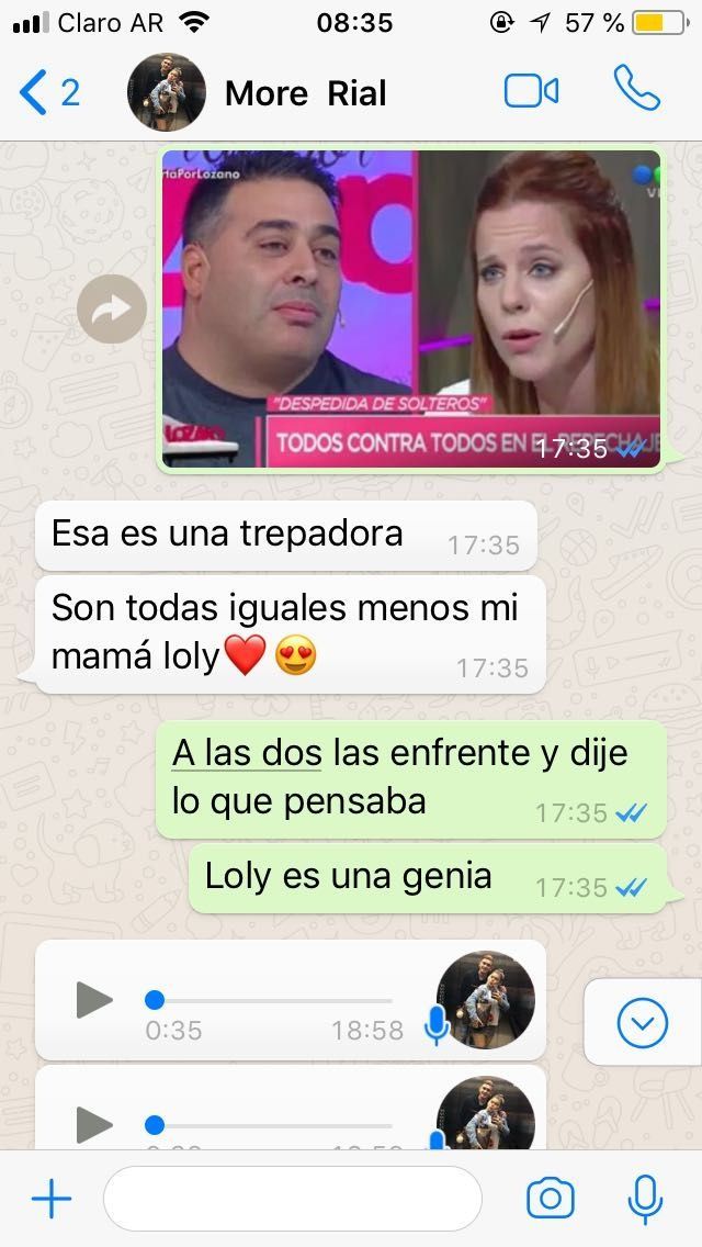 " Yo escribí todas las historias de Instagram", reveló Matías. El mediático también mostró una conversación que tuvo con la hija de Rial en la que se refería a Agustina Kämpfer como "una trepadora". "Son todas iguales", dijo Morena, pero luego agregó: " Menos mi mamá Loly".