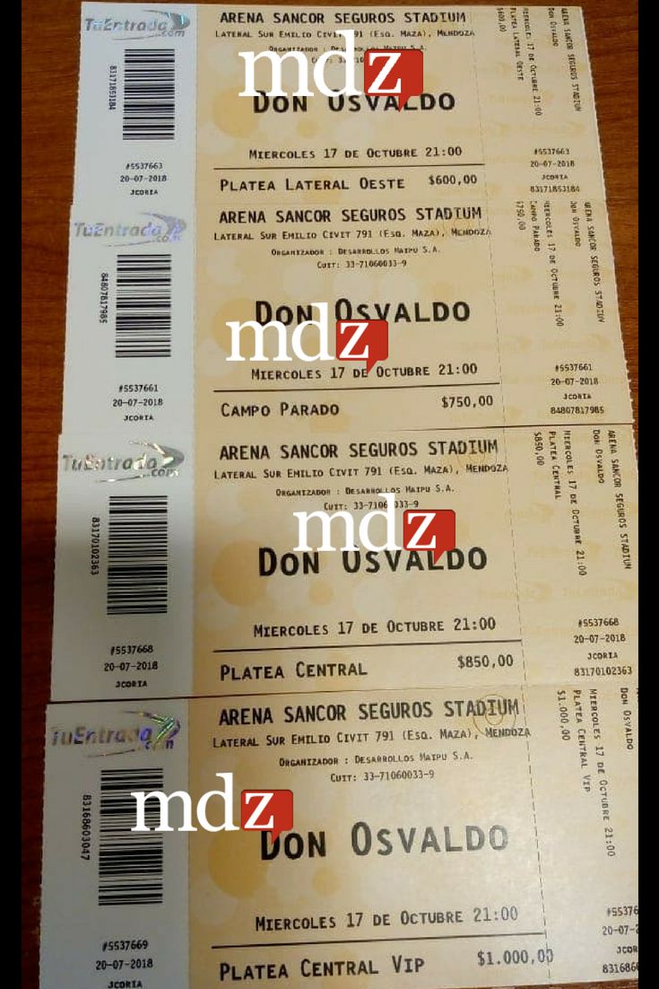 Por Tuentrada.com podrás comprar a partir del miercoles 1 de agosto. Los valores tendrán un recargo del 10%. Un detalle a tener en cuenta si adquirís tu ticket por este medio online: tendrás tiempo de ir a imprimir tu entrada en el complejo Arena Maipú hasta 10 días antes de la realización del concierto elegido.