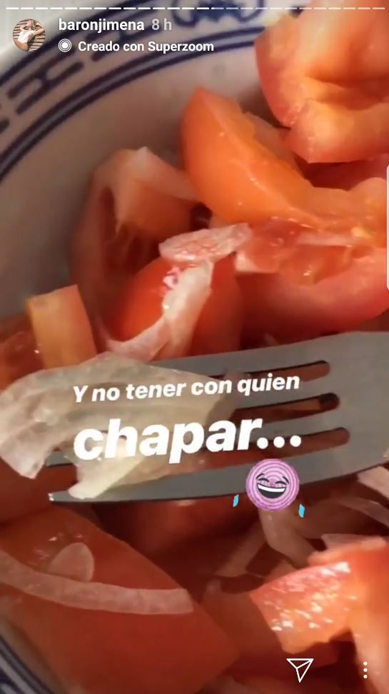 Este domingo, además de las candentes fotos en la cama, la nueva participante del Bailando 2018 publicó en su historia de Instagram un clip donde mostraba su almuerzo, que era una ensalada con bastante cebolla, y escribió: "Y sin tener con quien chapar".