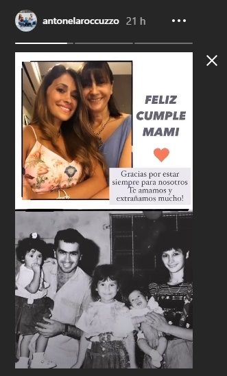 Recientemente la bella argentina compartió en una de sus historias de Instagram una foto con un emotivo mensaje celebrando el cumpleaños de su madre.