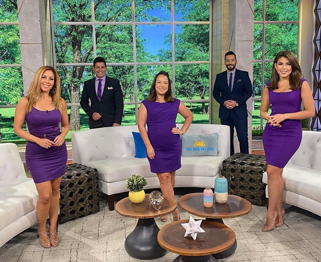 Hoy la esposa del bailarín Toni Costa, se la jugó con el vestido que usó en la TV. Adamari López es una mujer comprometida con los derechos de las personas. Es por eso que eligió un look de vestido corto, en color violeta estridente para apoyar a la comunidad LGTBQ.