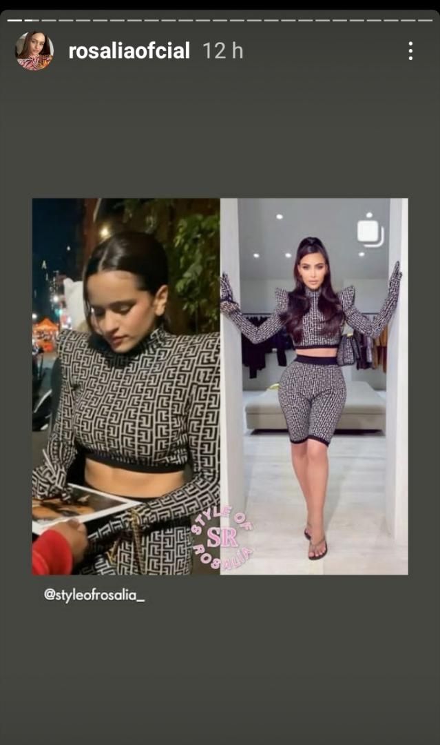 Recientemente un fan page dedicada a la vida de las artistas publicó en Instagram una foto en la cual hace comparación a un estilo que utilizó recientemente Rosalía con quién Kim Kardashian.