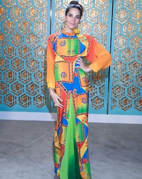 "El collar es parte del vestido. Jean Pierre me dio estas joyas hermosísimas, unos aros de citrino, que son así pegaditos a la oreja y quedan divinos. Y una cantidad de pulseras de esmeralda, brillantes y zafiros amarillos también. Todo muy lindo”, agregó.