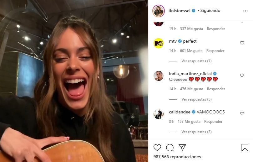En tanto que recientemente la bella cantante argentina compartió en Instagram un video donde anticipa su canción con Alejandro Sanz que se estrenará hoy y que se llama "Un beso en Madrid". Por lo que MTV le escribió "Perfect".