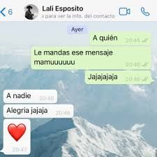 Intrigado, Jey Mammon se comunicó vía whastapp con Lali y le consultó: "¿A quién le mandás ese mensaje mamuuu? Jajajaja” y con absoluta frescura la popstar le respondió, “A nadie. Alegría jajaja” y acompañó su mensaje de un corazón.