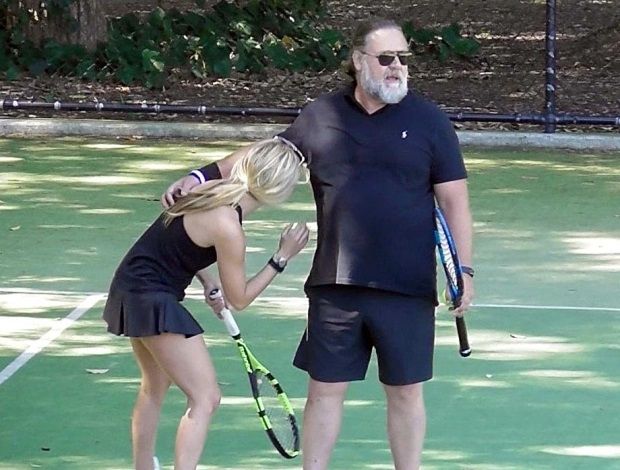 Russell Crowe disfruta de practicar deporte con su nueva novia, Britney Theriot. Los portales han vinculado a estar pareja desde hace un mes, y el escenario de la polémica fue el mismo. Una cancha de tenis.