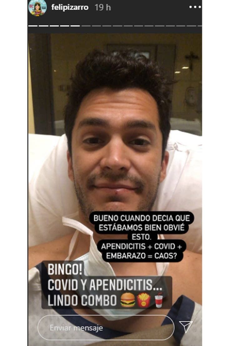 Poco después el panorama cambió abruptamente y Pizarro volvió a volcarse a la red con un mensaje. "Bueno, cuando decíamos que estábamos bien, obvié esto. ¡Bingo! Covid y apendicitis, lindo combo", expresó a través de su cuenta de Instagram junto a la imagen de su esposo en el hospital.