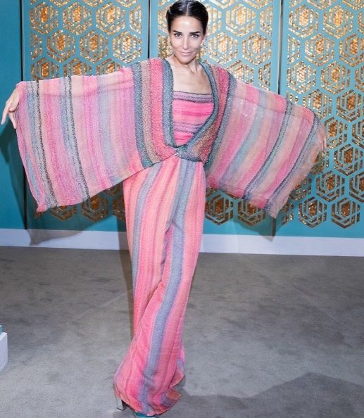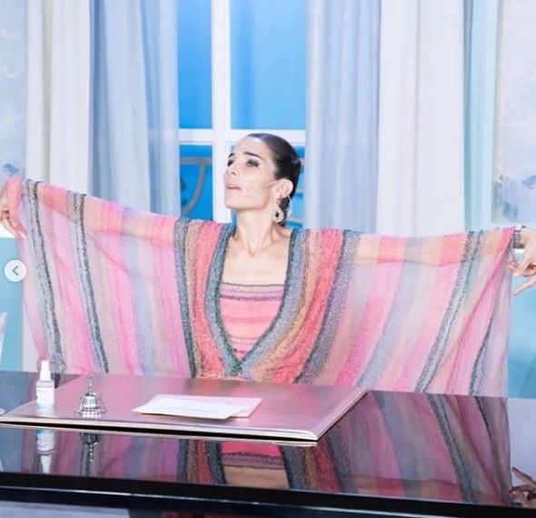 "Este es un palazzo y top de gasa triple, saco bordado en degradé de mostacilla", detalló. "Atenti al detalle. Nada está hecho al azar. Mi saco está bordado, pueden ver que va perfecto con las líneas del pantalón", agregó. Acto seguido se dirigió caminando hacia el icónico escritorio de la diva de los almuerzos.