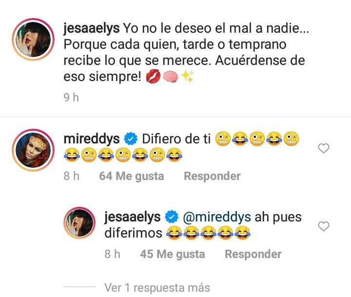 Una publicación que hasta su madre, Mireddys González, comentó indicando que difiere de su mensaje. De forma inmediata, Jesaaelys respondió, "ah pues diferimos". Sin duda un mensaje que causó controversia entre sus seguidores