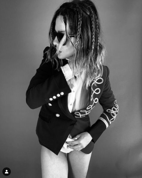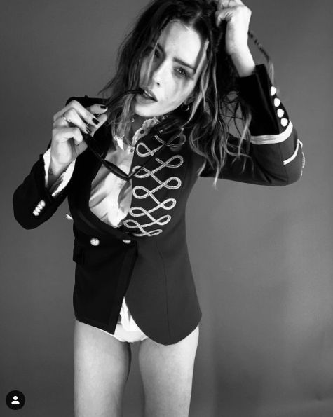 Vestida con una chaqueta, camisa blanca y ropa interior, la actriz dejó mostrar un adelanto de una producción de fotos para una reconocida marca de indumentaria.