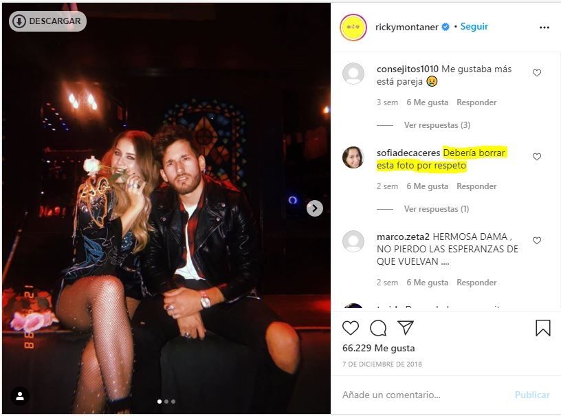 “Cómo me encantó esta pareja... @sofiareyes y @rickymontaner eran una cosa de locos ” “Me gustaba más está pareja ” y “Debería borrar esta foto por respeto” fueron algunos recientes comentarios de parte de los followers en la mencionada fotografía.