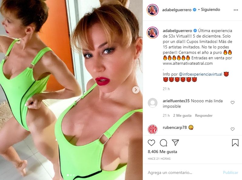 Recordemos que Adabel es una de las protagonistas que integra la obra “Sex” que dirige José María Muscari. En dicha obra de teatro deslumbra con su sensualidad. "Ensayando, entrenando y mejorando la técnica cada día. Es un forma de entrenar que me divierte y me motiva. Lo bueno es que la tarima se arma y desarma y puedo trasladarlo a cualquier parte. Pronto les voy a pasar coreos para las que quieran empezar a entrenar Pole en sus casas”, había escrito en un posteo sobre su entrenamiento para la obra.