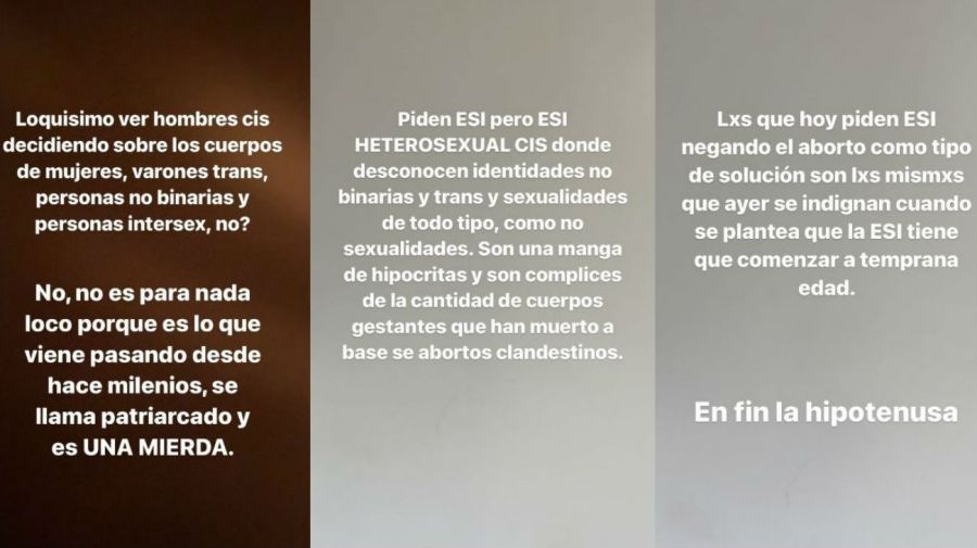 "Lxs que hoy piden Educación Sexual Integral (ESI) negando el aborto como tipo de solución son lxs mismxs que ayer se indignan cuando se plantea que la ESI tiene que comenzar a temprana", añadió el Dj.