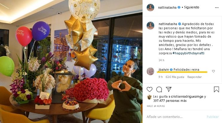 Hasta J Balvin reaccionó a ver la forma en la que Natti Natasha festejó su cumpleaños número 34