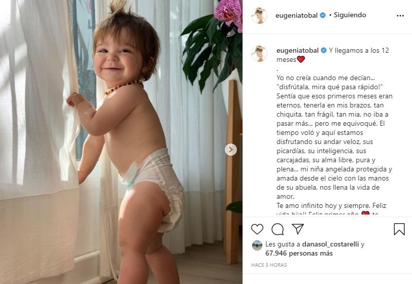 Movilizada por el primer año de vida de su niña, decidió dedicarle unas palabras en su cuenta de Instagram donde la siguen más de un millón de personas. Junto a unas tiernas postales de la infante en pañales emocionó a todos.