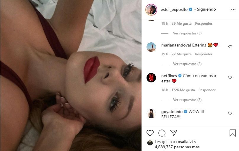 Hace algunas horas atrás en su perfil Instagram compartió una foto de ella desde la cama por lo que causó el comentario de Netflix. El mismo fue: "Cómo no vamos a estar".