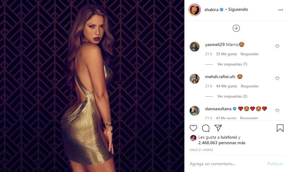 En tanto que hace algunas horas, Shakira, compartió una imagen de ella donde se la ve de espalda con un vestido dorado que dejó encantado a Luis Fonsi que reaccionó con un like en su foto.