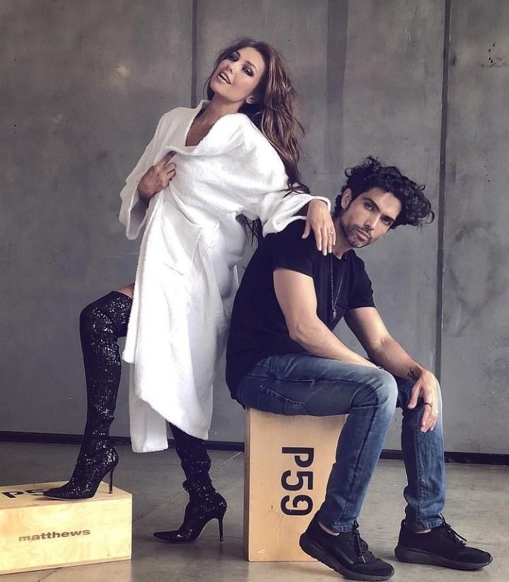 En la imagen se puede apreciar que Thalía se encuentra con una bata de baño y con unas botas negras, pues de una forma cautivadora posó al lado de otro hombre que no es su esposo.
