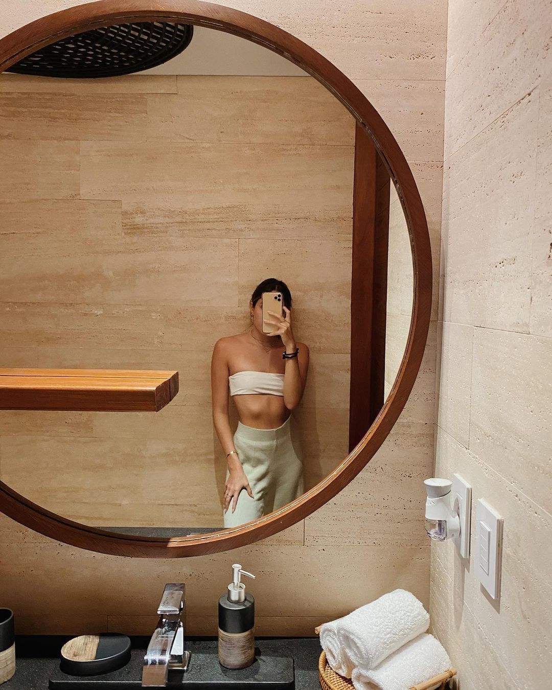 “Mirror selfie” fue el sencillo y corto mensaje que eligió Fernández para acompañar su reciente y fresca postal en la red de la camarita.
