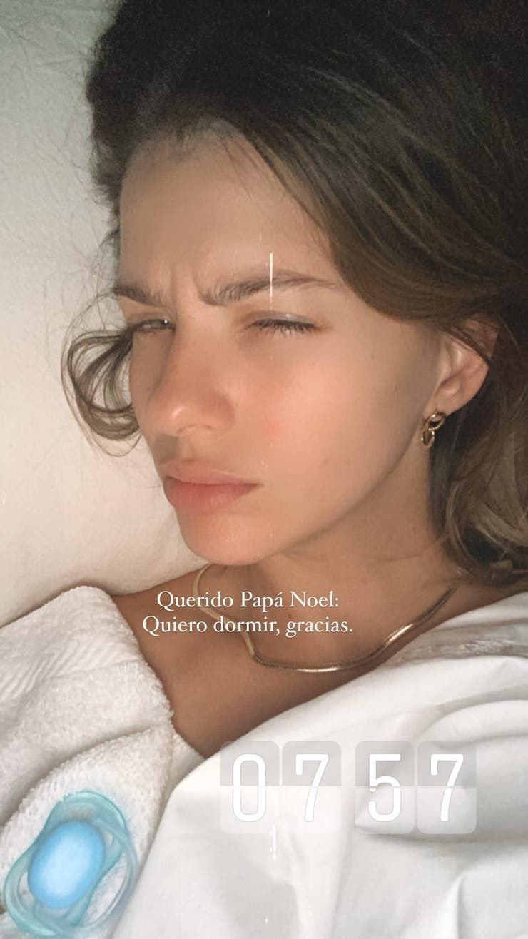 En este contexto, la China Suárez manifestó un particular pedido al legendario hombre del trineo que ilumina los deseos de tantos seres en el mundo. "Querido Papá Noel: quiero dormir, gracias", escribió la actriz junto a una foto suya desde la cama en donde se la ve con una toalla sobre su hombro y el chupete de Amancio, su hijo más pequeño, quien se despertó a las 7:57 para comer.